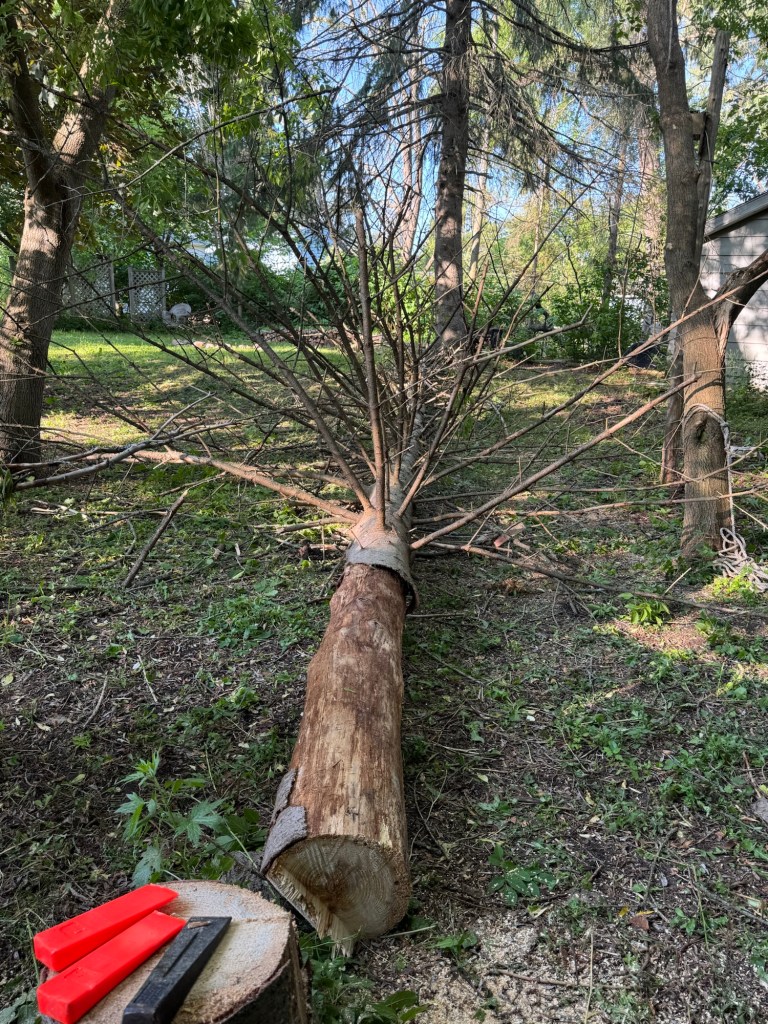 Successfully took down a 2-foot diameter oak located close to a house and next to a neighbor’s glass deck fence. Every branch and trunk section landed safely — clean and careful work from start to finish!